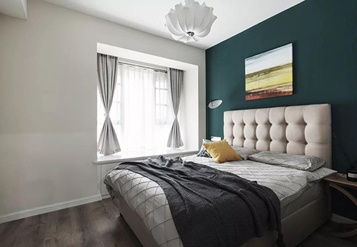 次卧相比于主卧而言,更加简洁。但与主卧一样有个很大的飘窗,保证了采光。一切从实用角度出发,废弃多余的附加装饰,点到为止。简约,不仅仅是一种生活方式,更是一种生活哲学。