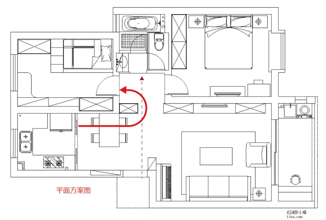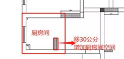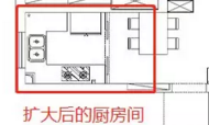 标红2处,变大后的厨房可以容纳冰箱和U型橱柜