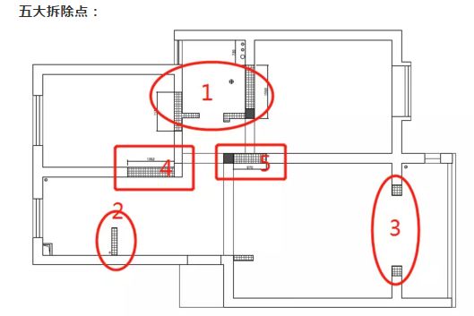 主要拆除有5个地方,这些地方的改动主要是为了扩大空间。